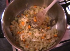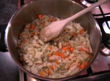 Add 2-3 tablespoons oil to the pan and add the carrots, celery, onion & garlic. Add a pinch of salt and pepper together with your dried herbs. Stir everything together and turn the heat down to low and cook for 5 minutes without colouring too much.