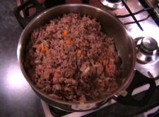 Turn the heat back on and when the mince is pretty much browned (don't worry if there are a few pink bits) then it's time to add in the other ingredients.