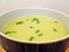 Leave to chill in the fridge for about half and hour. serve. Pour into bowls and add little dollops of natural yoghurt on the top, followed by a scattering of chopped chives for extra flavour.