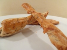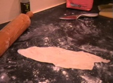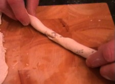 Roll the pastry out again into a rough square half a cm thick. Cut into approx 1 inch strips then all that's left to do is roll them up!