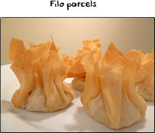 Place a pastry strip diagonally in front of you (10 o'clock to 4 o'clock). Start at the corner nearest you and gently roll up the pastry into a corkscrew shape. By having the pastry at an angle it should twist easily into a twirl.