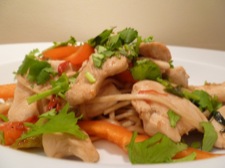A delicious stir fry combining fresh healthy Asian flavours! There is so much going on in this recipe with coriander and ginger and the gentle heat of chilli. The crunch of red pepper and the sticky sauce bind it all together. It looks great and best of all it's super healthy - proving that diet food doesn't have to be boring.