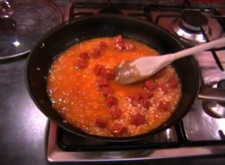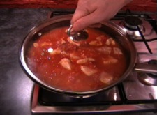 Add in some more chicken stock (100-200ml) and repeat as previous, stirring & simmering until absorbed. Add the remaining stock and whilst this is simmering, go and season the chicken with a good pinch of salt and pepper. Take the chicken over to the hob and add it straight into the pan and give it a stir. Give your hands a quick wash if you've touched the chicken, and then add the chopped tomatoes and stir.