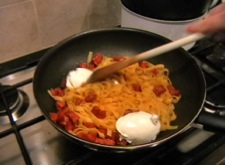 Before you start, put a large pan of salted boiling water on the hob, drop in the tagliatelle and cook for 3 mins. Meanwhile, have the other ingredients ready. Put a large frying pan/wok on the hob, off the heat. After the pasta has had 3 mins, click here!