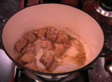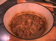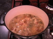 Turn the heat off now and put a lid on. If your dish can't go straight into the oven then transfer to an oven proof dish and cover. Pop the pork in the oven for 40 minutes.