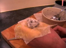 Flip the pastry over so that the filling now sits on one of your fingers, with the pastry hanging down over it, as in the 3rd photo on the right. Gently mold the pastry around the filling. Once you have it to this stage, turn it back over and you can sit it down!