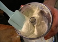 Put 50g of gorgonzola into your food processor together with 100g of creme fraiche. Add a small pinch of salt and pepper then blend until combined.