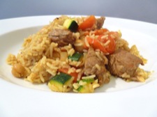Cumin and turmeric provide the basis for this delicious middle eastern inspired recipe. Succulent lamb and fresh vegetables, bound together with rice - this recipe is easy, has bags of flavour and is ready in the time than it takes to to cook the rice - a perfect quick fix meal. This is a two part recipe. In part one, we start everything cooking. In part two, we finish and serve.