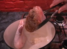 Preheat your oven to 180c and put your pan for the shanks on the hob to heat up. Next you need to season the shanks all over. A good way to do this with shanks is to put the seasoning on your chopping board and roll the shanks over the seasoning.