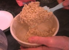 Empty into a mixing bowl and stir in the porridge oats. Add a tablespoon of your mix for each biscuit to your tray. Repeat this until the mix is all gone!