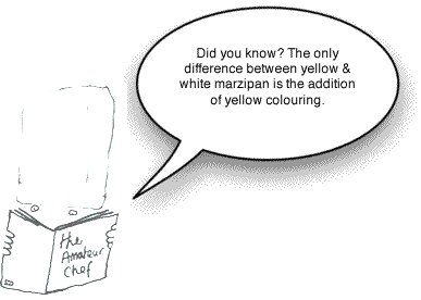 Preheat your oven to 150c. Put the marzipan into your food processor and blend until chopped up. Add in the icing sugar, egg white and a dessert spoon of plain flour. Blend until you have a smoothish mix.