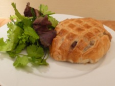 This is a great vegetarian dish that's easy to do, tastes great and looks really fantastic. In that lovely puff pastry parcel is a large portabello mushroom stuffed with a mix of chopped mushrooms, ricotta and fresh thyme. The fragrant thyme perfumes a dish that's bound together by creamy ricotta. Whether you're vegetarian or not, try this and you wont be disappointed.