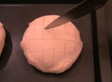 Place the parcels onto a baking tray and then score lines horizontally and vertically across the parcels using the weight of the knife to gently make the lines.