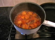 Before you start, have the plums chopped and ready and put a small saucepan on the hob. Now click here!