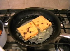 Before you start, pour the beaten eggs onto a plate next to the hob. Have the pannetone slices ready and the mascarpone out of the fridge. Put your frying pan on the hob on a high heat and click here!