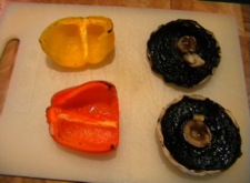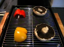 Remove the tray from the grill. Chop the peppers into little chunks and thickly slice the mushrooms.