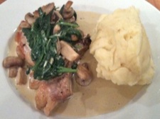 To serve, put a chop onto one side of your plate and then top with the mushrooms & spinach. Add a nice dollop of mash to the side and you're done!