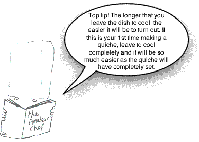 Before you start, make sure your quiche case has cooled slightly. Have the veg chopped, the eggs broken into the measuring jug and the cream standing by. Now click here!