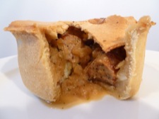 Nothing says British more than sausage and mash. It's one of our nation's traditional favourites, and what could be better than to put it in a pie! Shortcrust pastry filled with mash and sausage pieces, and a generous helping of onion gravy oozing out. It's a pie lovers dream. This is a three part recipe. In part one, we roll out the pastry and start cooking the potatoes and onions. In part two, we fill the pies and cook them. In part three, we turn out the pies and serve.