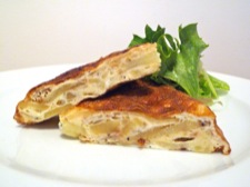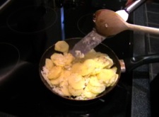 A Spanish tapas classic that can be served hot or prepared in advance and eaten cold. This dish brings back memories of lovely hot holiday nights! It's a great example of a recipe that, whilst using only a handful of ingredients, is really tasty and popular. This is a three part recipe. In part one we gently cook the potatoes and onions. In part two we add the eggs and in part three we turn out the omelette.