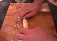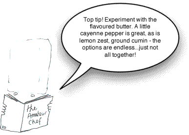 Put a pan of salted boiling water on the hob. Add the thyme & butter into a small bowl and mix it all together with a spoon. Put a sheet of clingfilm on your work surface and then spoon the butter onto the middle of the clingfilm. Fold the clingfilm over the butter and roll it up, molding it into a sausage shape. Twist the ends of the clingfilm to tighten everything up and then pop it in the fridge to firm up.