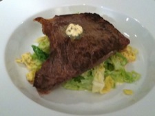 To serve, spoon some of the cabbage into the middle of your plate/bowl and place a steak on top. Remove your butter from the fridge and cut a couple of little disks, remove the clingfilm and pop on top of the steaks. All done!