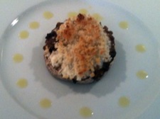To serve, put a mushroom into the middle of the plate and add a few drops of extra virgin olive oil around the outside.