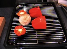 Put the peppers, and the tops that you've sliced off onto the grill tray together with the mushroom. Sprinkle a little salt and pepper over the mushroom then put the tray under the grill for 2.5 minutes. Turn everything over and grill for another 2.5 minutes.