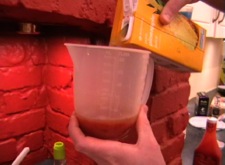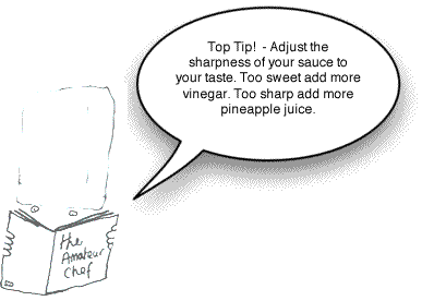 Put your small saucepan on a low heat with a teaspoon of oil. Add in the grated garlic and ginger, stir and allow this to cook gently as the pan heats up. Pour 150ml of tomato ketchup and 150ml of pineapple juice into a measuring jug and add to the garlic and ginger. Stir through in the pan and add 1 tablespoon of soy sauce, 1 tablespoon of rice vinegar and 2 tablespoons of honey. Stir and leave to heat through.