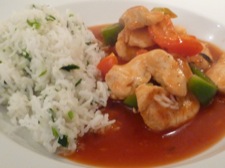 This is a perfect example of how healthy low-fat food doesn't need to be bland and boring. What could be better than a guilt-free version of the takeaway favourite - sweet and sour chicken? My version contains virtually no fat and has the taste to rival any takeaway. It also looks fantastic. The tangy sauce with crunchy peppers and lean stir fried chicken go perfectly with fragrant coriander rice.