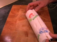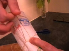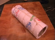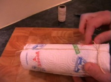 A joint of meat or to practise without getting your hands messy, a half empty roll of kitchen roll (paper).