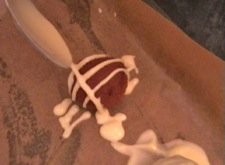 If you're using white chocolate for the coating, try making stripes, as per the fourth photo on the right. All you need to do is put a little of the melted chocolate onto a teaspoon and slowly allow it to run off the spoon.
