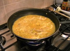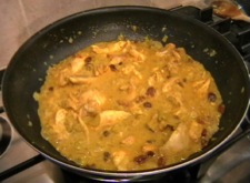 Turn the heat back up high, and add the sultanas and cooked turkey. Stir thoroughly and allow to bubble away for 5 minutes.