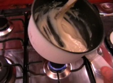 Turn your saucepan onto a low heat and slowly melt the butter. Turn the heat off and add 1 heaped dessert spoons of plain flour. Stir the pan to incorporate the flour into the butter. Turn the heat back on low and cook, whilst stirring, for 1 minute to cook out the flour.